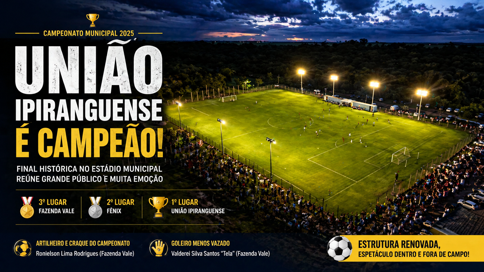 Mais do que definir um campeão, o Campeonato Municipal deste ano deixa um legado importante: a valorização do esporte local, o incentivo aos atletas e o fortalecimento da comunidade através do futebol.